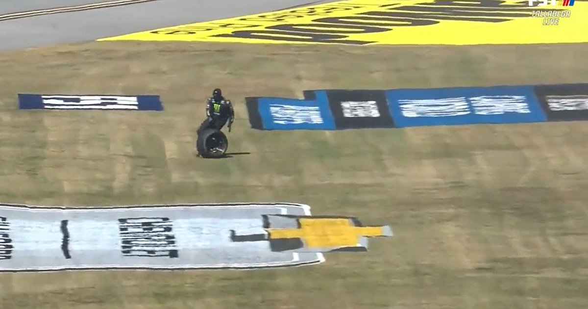 Στη συνέχεια, το ελαστικό κυλώντας πέρασε μπροστά από τα αυτοκίνητα που έτρεχαν και ο μηχανικός αποφάσισε να διασχίσει την πίστα και να το κυνηγήσει για να σταματήσει την τρελή του πορεία. Αυτή η κίνηση είναι ενάντια στους κανονισμούς του Nascar και έτσι αμέσως το μέλος αποβλήθηκε. Το πιο σημαντικό, ωστόσο, είναι ότι από όλη αυτή την... αναμπουμπούλα δεν τραυματίστηκε κανείς.