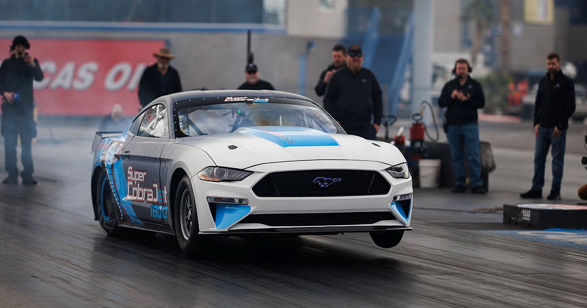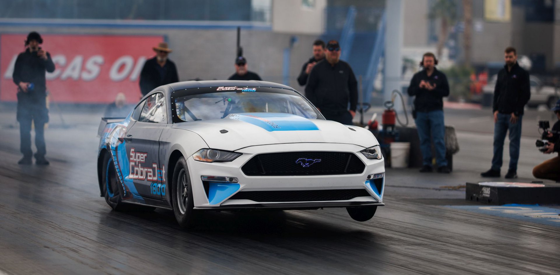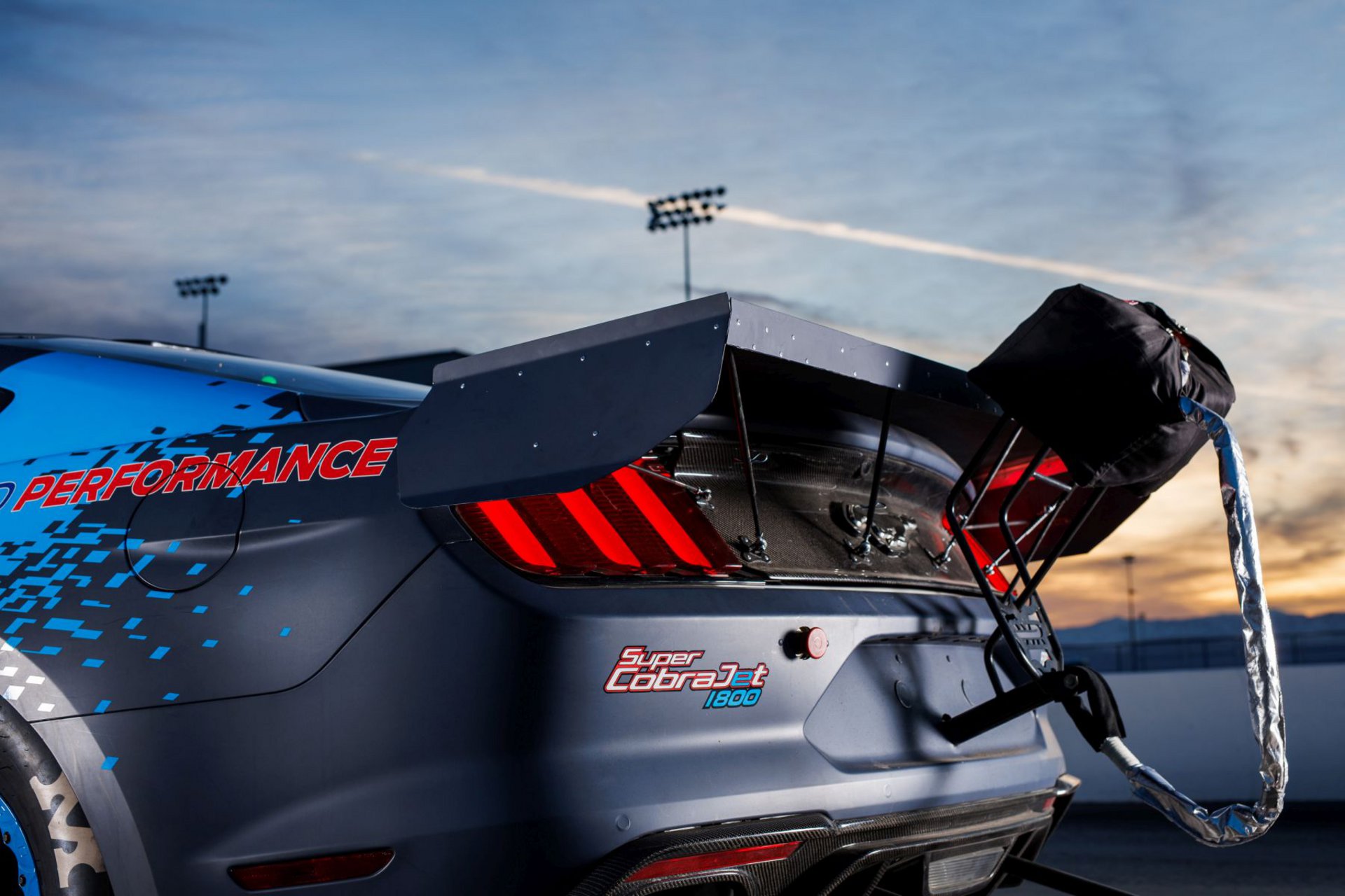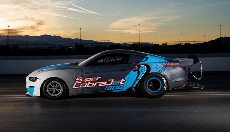 Στο πλαίσιο των συνεχών προσπαθειών της στο τομέα του ηλεκτροκίνητου μηχανοκίνητου αθλητισμού, η Ford Performance παρουσίασε την Mustang Super Cobra Jet 1800, μια εξελιγμένη και ακόμα πιο επιθετική έκδοση της Mustang Cobra Jet 1400. Στόχος της νέας έκδοσης είναι να καταρρίψει το παγκόσμιο ρεκόρ NHRA της Cobra Jet 1400 για ηλεκτρικά οχήματα με πλήρες κιτ αμαξώματος στο “400άρι”, και συγκεκριμένα την επίδοση των 8,128 δευτ. με ταχύτητα εξόδου 171,97 μίλια/ώρα.