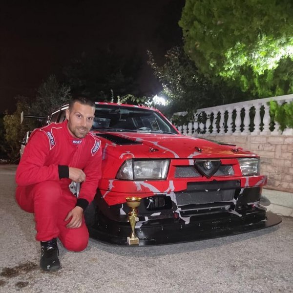 Το συγκεκριμένο αυτοκίνητο ήταν μια απλή Alfa Romeo 75 Turbo, την οποία ο έμπειρος οδηγός χρησιμοποιούσε ως καθημερινό αυτοκίνητο έως το 2019. «Συμμετείχα σε κάποια trackdays, όμως μέχρι εκεί. Το 2019 αποφάσισα να τοποθετήσω κλωβό ασφαλείας, ώστε να κάνω το επόμενο βήμα στις αναβάσεις, στην κατηγορία FormulaSaloon, η οποία σου δίνει την ευελιξία να εξελίξεις ένα απλό, καθημερινό αυτοκίνητο, σε αγωνιστικό, τοποθετώντας εξοπλισμό προδιαγραφών FIA, όπως rollcage, πυρόσβεση, αγωνιστικά καθίσματα και ζώνες. Στην πραγματικότητα, χωρίς να χρειαστεί να ξοδέψεις πακτωλό χρημάτων, μπορείς με απόλυτη ασφάλεια να απολαμβάνεις τους αγώνες αναβάσεων» μας είπε.