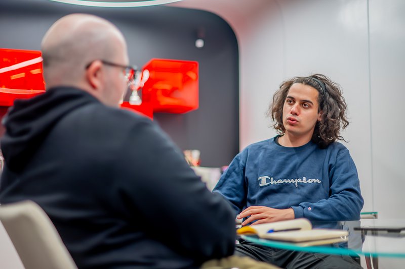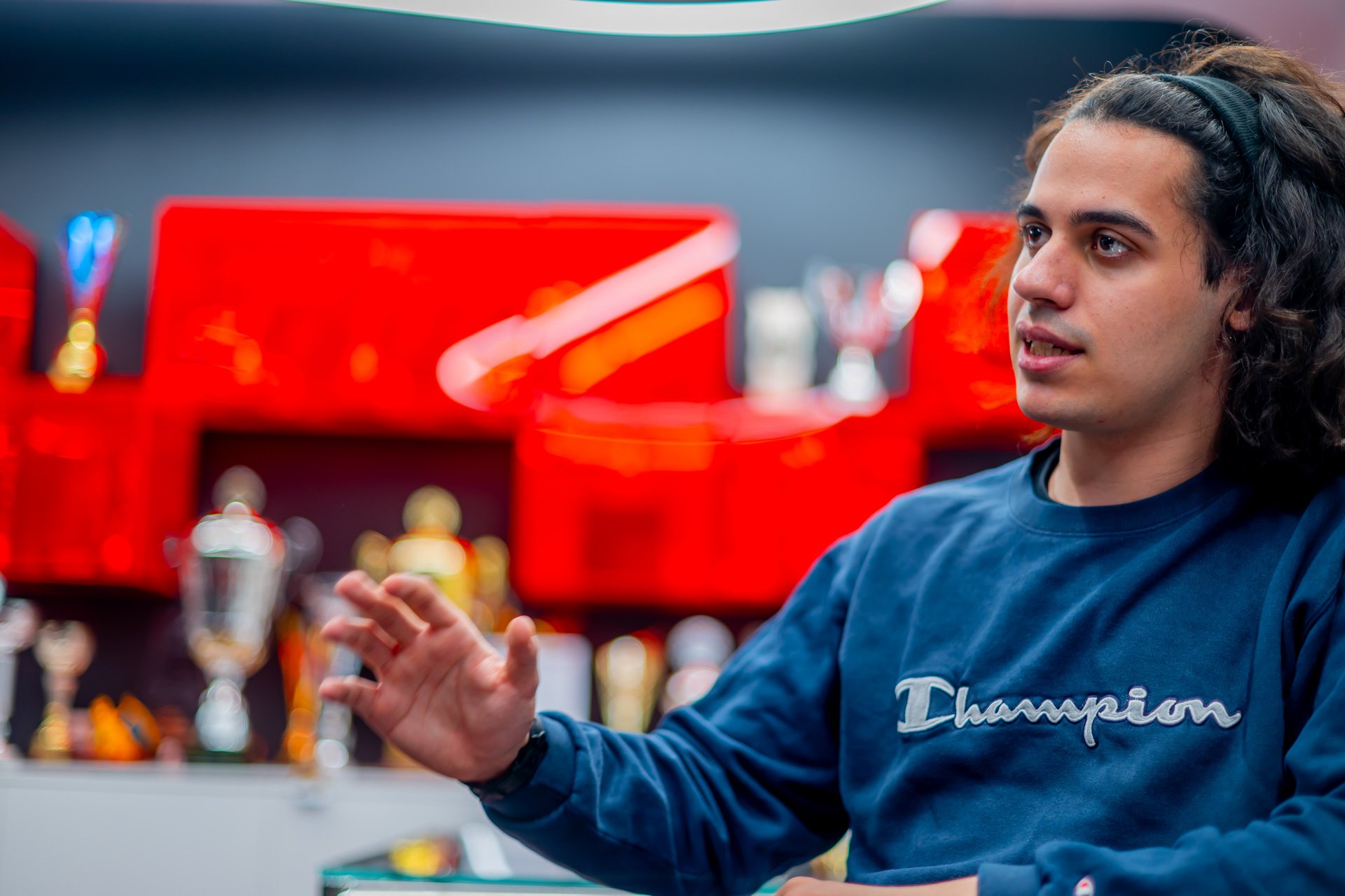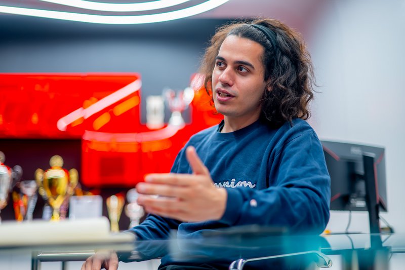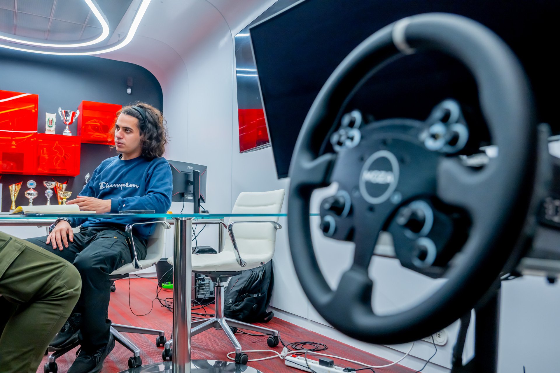 Δ.Μ.: Βλέπω ότι έχεις εδώ το sim rig, με το τιμόνι, το αγωνιστικό κάθισμα, τα πεντάλ. Πόσο σε βοηθάει η προπόνηση εδώ, τι είναι αυτό που εστιάζεις για να μπορέσεις να προετοιμαστείς πριν από κάθε αγώνα;