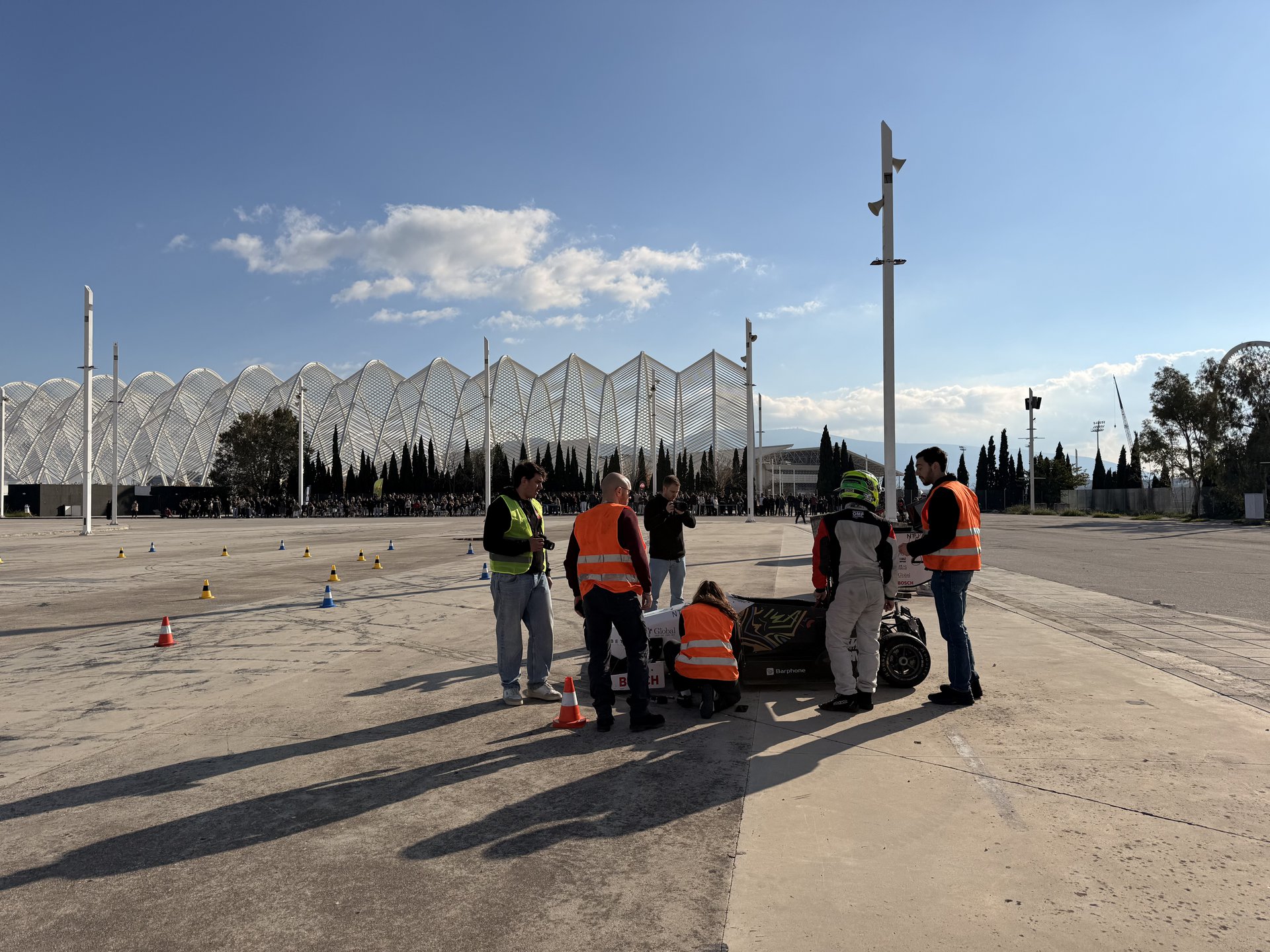 Η προσέλευση στο πάρκινγκ των χορηγών, δίπλα από το κλειστό του ΟΑΚΑ και μόλις ένα βήμα μακριά από τον Σταθμό «Ειρήνη» του μετρό, ήταν αρκετά μεγάλη, καθώς περνούσε η ώρα και ο κόσμος ανέμενε να βγουν τα δύο μονοθέσια στις ειδικά διαμορφωμένες πίστες, οι οποίες ετοιμάστηκαν από την ομάδα για να αναδείξουν τις ικανότητες των δύο αγωνιστικών τους.