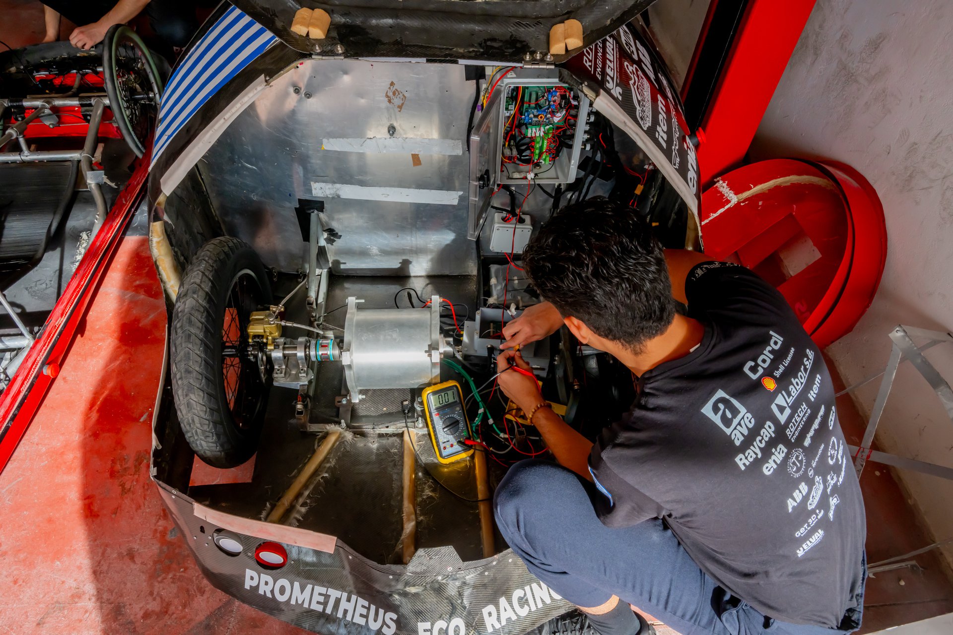 Καλά διαβάσατε: ένας ηλεκτροκινητήρας με βάρος πολύ κάτω από τα 10 kg, τροφοδοτεί ένα μονοθέσιο 120 kg, διανύοντας 370 km με μόλις 1 kWh. Πρόκειται για ένα τεχνολογικό «θαύμα», το οποίο βρίσκεται στην καρδιά όλου του εγχειρήματος της Prometheus Eco Racing. Δεν είναι οι απόλυτοι χρόνοι ο στόχος, ούτε η ταχύτητα. Είναι η ενεργειακή αποδοτικότητα, η απόδειξη ότι μπορείς -έστω σε τέλειες συνθήκες, σε ένα ελεγχόμενο περιβάλλον- να χρησιμοποιήσει ελάχιστη ενέργεια για να κινηθείς, να κινήσεις τον κόσμο.