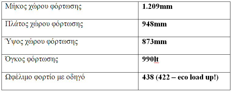 Με μήκος μόλις 3,54m το 4θυρο αυτό επαγγελματικό όχημα πόλης αποδεικνύεται εντυπωσιακά ευρύχωρο και ικανό: