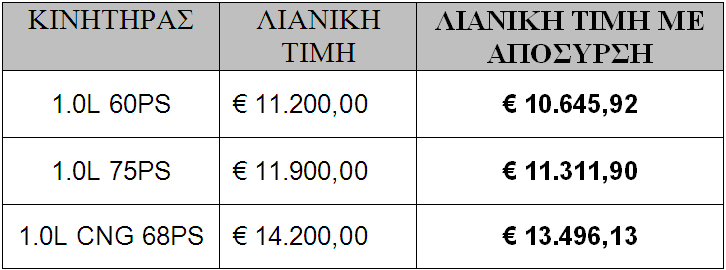 Τόσο το load up! που διατίθεται με δύο βενζινοκινητήρες απόδοσης 60PS και 75PS όσο και το eco load up! με κινητήρα φυσικού αερίου απόδοσης 68PS εξασφαλίζουν μεγάλη οικονομία και προστατεύουν το περιβάλλον.
