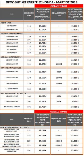 • Όφελος για τον πελάτη 800€ στα HR-V 1.6 DIESEL MT COMFORT & 1.6 DIESEL ELEGANCE ADAS AD-A