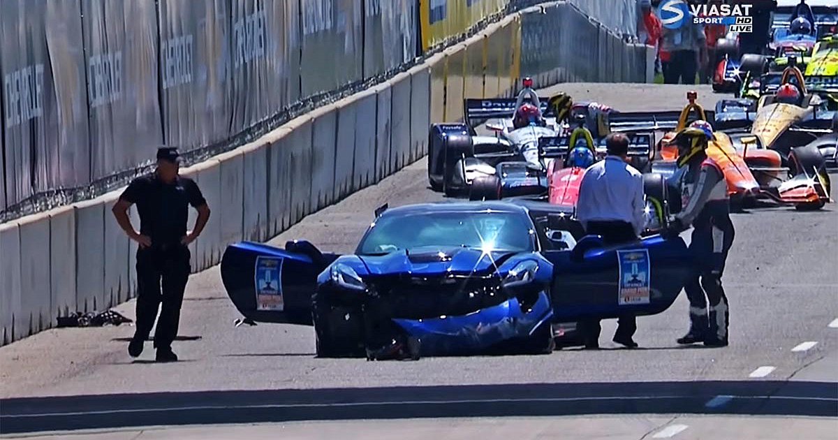 Το περίεργο και η είδηση που κάνει τον γύρο του κόσμου δεν αφορά σε κάποιο αγωνιστικό που άφησε τα κομμάτια του στην πίστα, αλλά για το ίδιο το αγωνιστικό που εντελώς χαζά έπεσε με δύναμη πάνω στον προστατευτικό τοίχο! Το αυτοκίνητο ασφαλείας ήταν (στην κυριολεξία αφού στραπατσαρίστηκε άσχημα) μία Corvette ZR1 και στο κάθισμα του οδηγού βρισκόταν ο Mark Reuss, φανατικός φίλος των αγώνων και υπεύθυνος της εξέλιξης των προϊόντων στην Chevrolet.