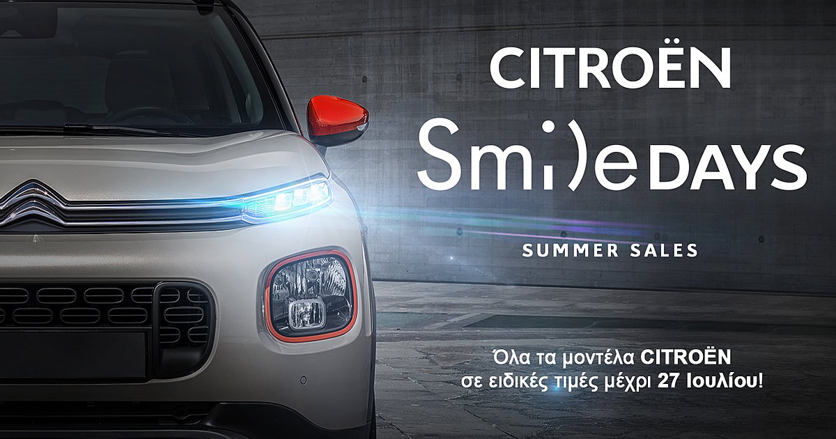 CITROËN SUMMER SMILE DAYS, από τις 9 μέχρι τις 27 Ιουλίου! Ειδικές Τιμές, αποκλειστικά ΑΤΟΚΑ χρηματοδοτικά προγράμματα και 5 χρόνια εγγύηση, στα αγαπημένα μοντέλα CITROËN!