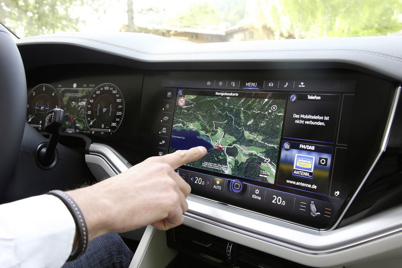 Στο εσωτερικό, η Volkswagen παρουσιάζει για πρώτη φορά το Innovision Cockpit, ένα συνδυασμό πλήρως ψηφιακού πίνακα οργάνων (οθόνη 12΄΄) με το κορυφαίο σύστημα infotainment Discover Premium (οθόνη 15΄΄), το οποίο προσφέρει όλες τις λειτουργίες πληροφόρησης, επικοινωνίας και χειρισμού, καταργώντας ουσιαστικά τα συμβατικά πλήκτρα και τους διακόπτες. Με το Innovision Cockpit ο οδηγός του νέου Touareg, ελέγχει και χειρίζεται τα πάντα διαισθητικά, έχοντας ταυτόχρονα απεριόριστες δυνατότητες εξατομίκευσης. Το νέο Touareg αποτελεί την πλήρη μετουσίωση του ψηφιακού εσωτερικού του αύριο, στο σήμερα.