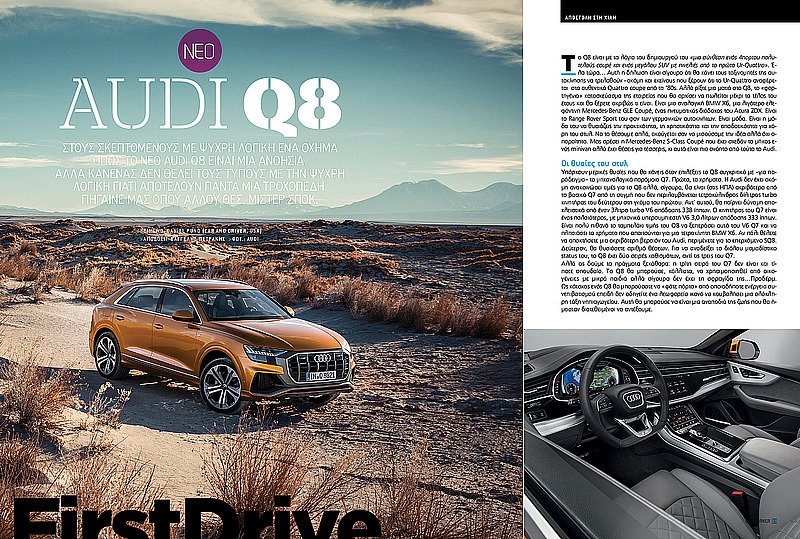 Επίσης, οδηγούμε αποκλειστικά τη BMW X3 M40i, τα Audi Q8, Lamborghini Urus, Kia Sportage, Hyundai Kona, Tucson και Santa Fe, Mercedes-Benz G550 4X42 και Honda CR-V 1.5 VTEC, και δοκιμάζουμε μεταξύ άλλων τα νέα Ford Fiesta Active 1.5 TDCI 120 PS, Volvo XC60 T8 Twin Engine PHEV 407 PS, BMW X2 20d xDrive, Porsche Cayenne S, Seat Arona 1.6 TDI 95 PS, Suzuki Ignis 1.2 90PS 2WD, Volkswagen Cross UP! 1.0 TSI 90PS.