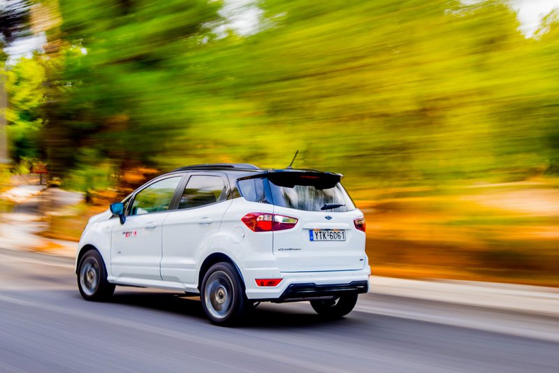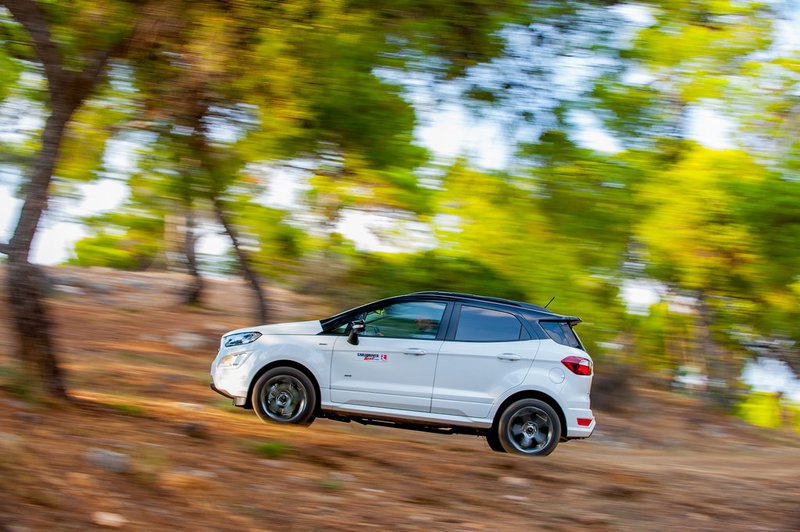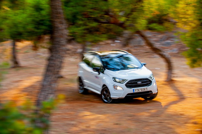 Με τα αποθέματα ροπής, όμως, τούτο το EcoSport καταφέρνει να είναι ταχύτερο από το βενζινοκίνητο 1000άρι αδέλφι του των 140 ίππων. Με προνοητική οδήγηση, λοιπόν, μπορείτε άνετα να κινηθείτε γρήγορα και να απολαύσετε και το διαφορετικό set-up της ανάρτησης μιας και ο πίσω άξονας δε φιλοξενεί ημιάκαμπτο αλλά πολλαπλούς συνδέσμους. Μπορείτε, λοιπόν, να νιώσετε λίγο διαφορετικό τον τρόπο μετατόπισης του αμαξώματος σε σλάλομ με ένα τυπικό για 4x4 σύστημα διεύθυνσης, αλλά το αυτοκίνητο θα παραμείνει πεισματικά κολλημένο στην άσφαλτο και στην πορεία που χαράξατε με έναν τρόπο που δεν θυμίζει κάποιο αυτοκίνητο «της σειράς».