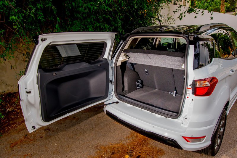 Οι χώροι τυπικοί για το μέγεθος του αυτοκινήτου με 2,519 μέτρα μεταξονίου διαθέτουν αρκετό αέρα για τα κεφάλια, ενώ στο ανανεωμένο EcoSport υπάρχει πλέον και ανταγωνιστικός χώρος αποσκευών, παρότι η θύρα εκεί εξακολουθεί και ανοίγει στο πλάι. Τα δε φρένα μαζί με το καλό σετ ελαστικών πέτυχαν πολύ καλές αποστάσεις ακινητοποίησης.