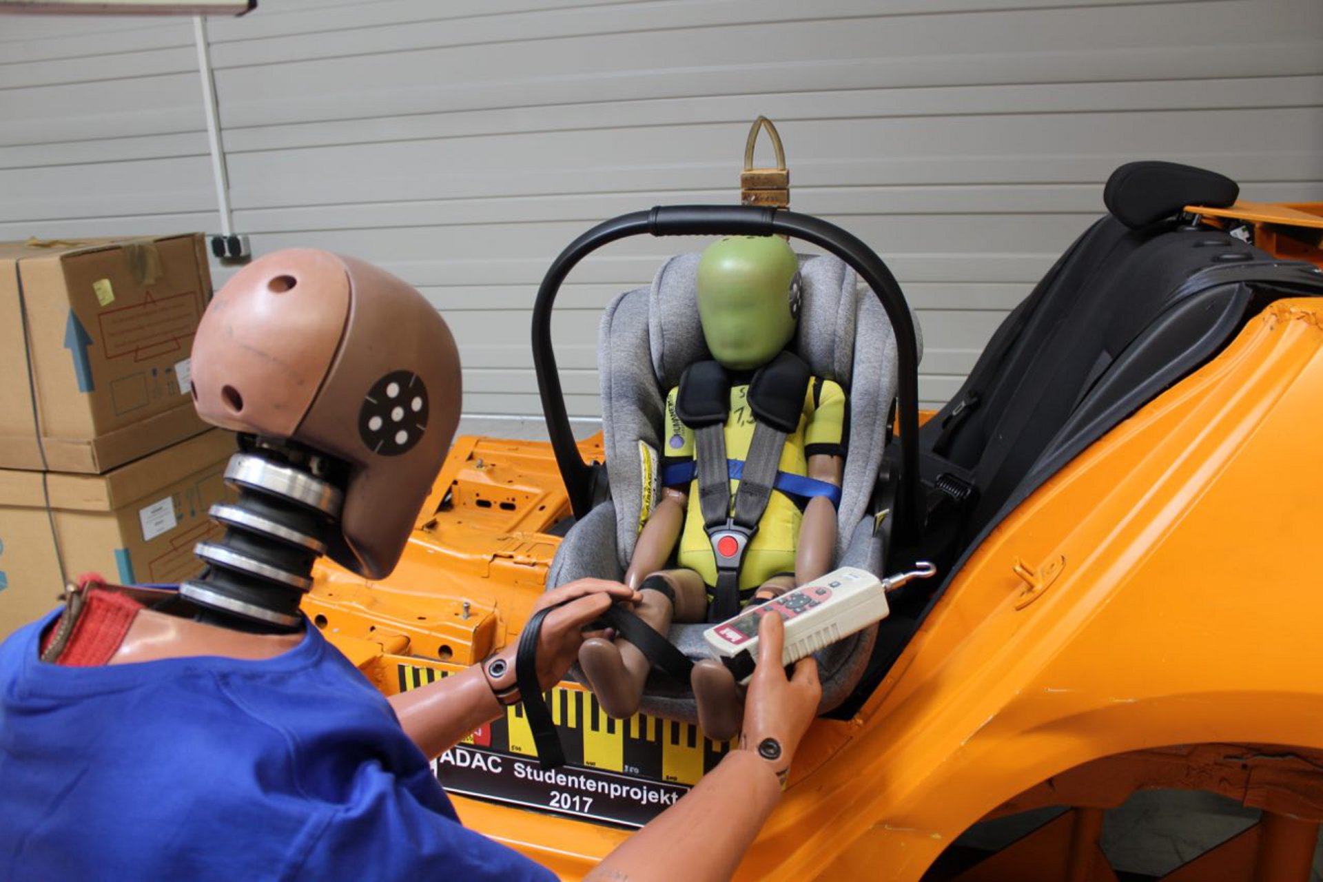 Οι δοκιμές πρόσκρουσης, που έχουν πραγματοποιηθεί, γίνονται με ταχύτητα 50 km/h και σε μετωπική σύγκρουση του αυτοκινήτου. Πέρα από τη σχετική αξιολόγηση των ανδρεικέλων, έγινε εκτίμηση των δεδομένων, που συλλέχτηκαν από αισθητήρες και -κατ’ επέκτασιν- από μία παιδοχειρουργό. Έτσι, προέκυψε ότι είναι δυνατό να αποφευχθούν επτά σοβαρά λάθη: