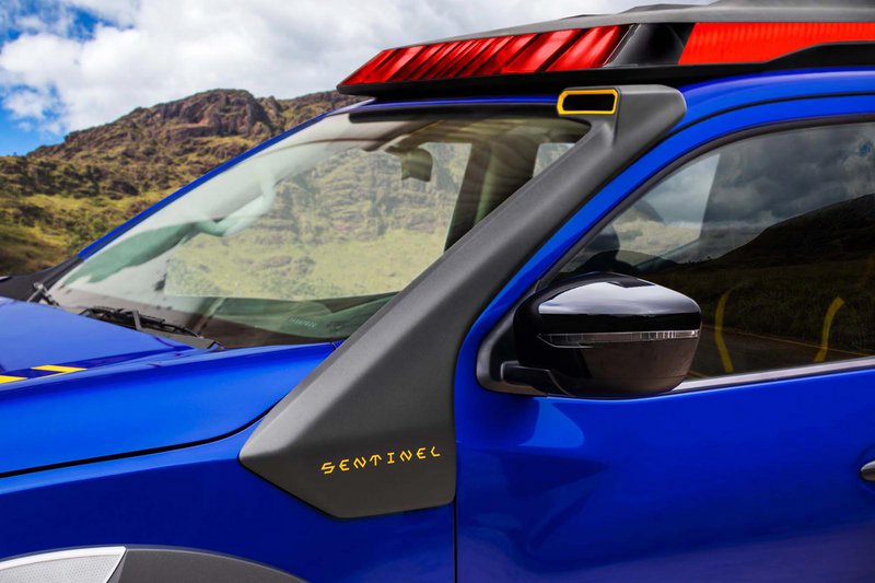 Στο Frontier Sentinel ξεχωρίζει επίσης το snorkel,  το οποίο του επιτρέπει να διασχίσει περάσματα με βαθιά νερά, καθώς και ένα ειδικό σύστημα φωτισμού στην κορυφή του παρμπρίζ. Στο εσωτερικό, το όχημα διαθέτει ταμπλό και κεντρική κονσόλα σε χρώμα Electric – Yellow, εμπνευσμένο από τα ηλεκτρικά κυκλώματα. Αντίστοιχη απόχρωση διαθέτουν και τα καθίσματα  στην επένδυση και την ραφή τους.