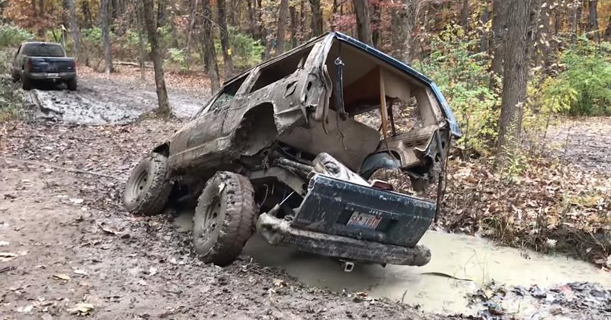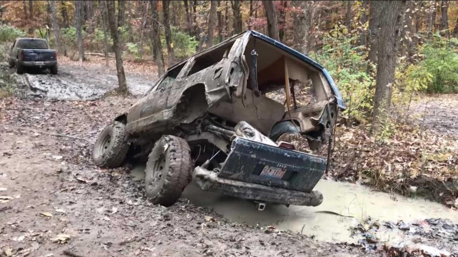 Το δύσμοιρο Cherokee έχει πέσει σε μία μεγάλη λακκούβα απ' όπου προσπαθεί με νύχια και με δόντια να βγει. Όμως προφανώς δεν βρίσκεται στην πρώτη του νιότη και η σκουριά έχει κάνει την δουλειά της, με αποτέλεσμα κάποια στιγμή όλο το πίσω μέρος να βρίσκεται στον αέρα.