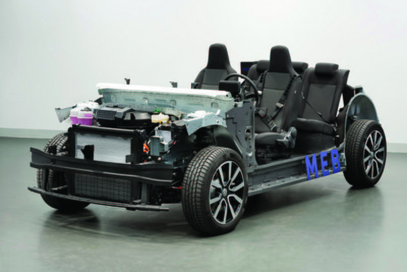 Φανταστείτε κάτι ανάλογο µε την σπονδυλωτή πλατφόρµα MQB για τα συµβατικά αυτοκίνητα, προσφέροντας ευελιξία στο µεταξόνιο και στην τοποθέτηση των µηχανικών µερών. Η MEB έχει πολύ µεγάλη σηµασία για τον όµιλο αφού θα τοποθετηθεί σε διάφορα µοντέλα διαφορετικών σηµάτων, σε hatch και crossover, µε πίσω κίνηση ή τετρακίνηση.