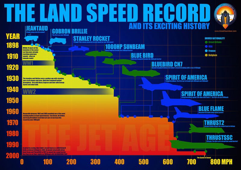 Η πιο γνωστή προσπάθεια των τελευταίων ετών, που έχει βάλει σα στόχο να φτάσει τα 1.000 mph (μίλια την ώρα) που αντιστοιχούν σε 1.609 km/h είναι αυτή του βρετανικού Project Bloodhound, με ένα όχημα που παραπέμπει σε πύραυλο. Μάλιστα μοντέλο του οποίου είχε εκτεθεί και στην Αθήνα.