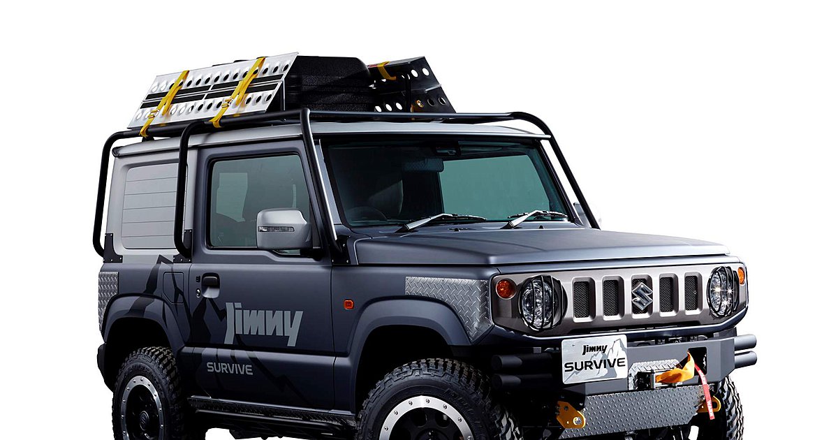 Έτσι, η ιαπωνική εταιρία θα παρουσιάσει το πρωτότυπο Jimny Survive με αυξημένη απόσταση από το έδαφος και «τρακτερωτά» λάστιχα για να ξεπερνά τις πιο λασπώδεις περιοχές. Το κάτω μέρος και ειδικά στα άκρα του υπάρχουν αλουμινένιες ποδιές προστασίας, ενώ προστατευτικά υπάρχουν και στους προβολείς δίχως να απουσιάζουν οι γάντζοι πρόσδεσης.