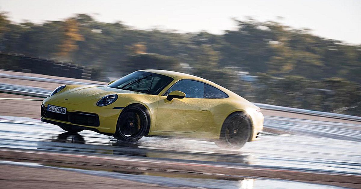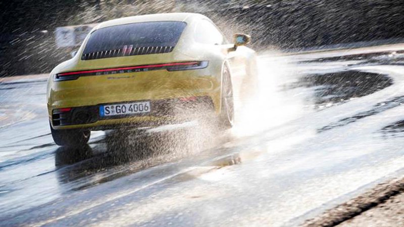 Μία από τις πιο επικίνδυνες καταστάσεις που μπορεί να αντιμετωπίσει ο οδηγός και ειδικότερα εκείνος ενός σπορ αυτοκινήτου με πολλά άλογα είναι το βρεμένο οδόστρωμα και η περίπτωση υδρολίσθησης. Ειδικά όταν μιλάμε για τη νέα 911 που στην Carrera S αποδίδει 450 PS στους πίσω τροχούς και έχει το 0-100 km/h σε 3,7 sec.
