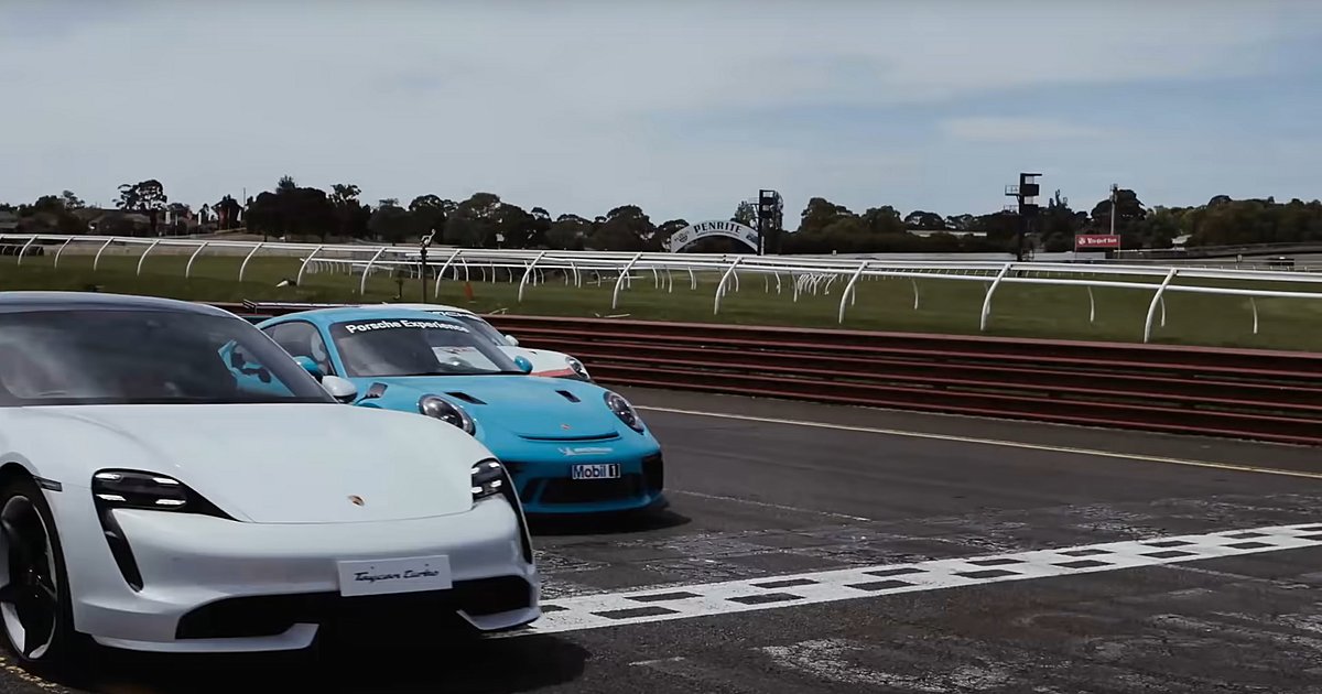 Ωστόσο, τα στελέχη της Porsche θέλησαν να δείξουν τις δυνατότητές της έναντι του «εσωτερικού ανταγωνισμού» της. Για τον λόγο αυτό, αντιπαρέβαλαν την Porsche Taycan Turbo με μία 911 GT3 RS και μία αγωνιστική 911 GT3 Cup. Στον αγώνα επίδειξης που πραγματοποιήθηκε στην πίστα «Sandown International Raceway», κοντά στη Μελβούρνη, η Taycan κέρδισε τα δύο ξεχωριστά οχήματα, τόσο στη διαδικασία αγώνα ενός γύρου στην πίστα, όσο και στην επιτάχυνση 0-400 m.