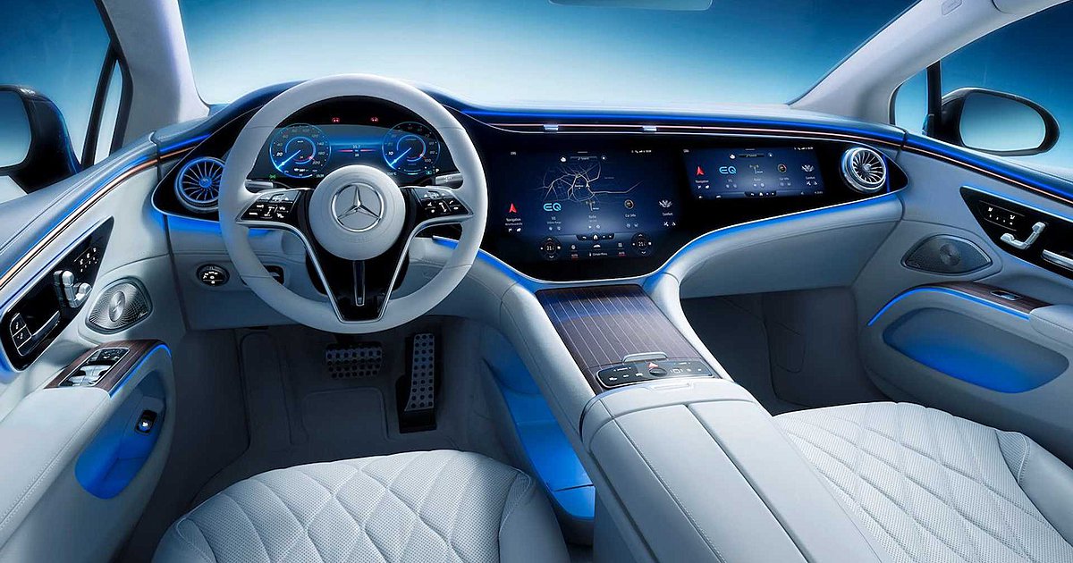 Το πρώτο πράγμα με το οποίο έρχεται αντιμέτωπος κανείς στο εσωτερικό της Mercedes-Benz EQS είναι η περίφημη hyperscreen, μια συστοιχία οθονών που καλύπτουν σχεδόν ολόκληρη την επιφάνεια του ταμπλό.