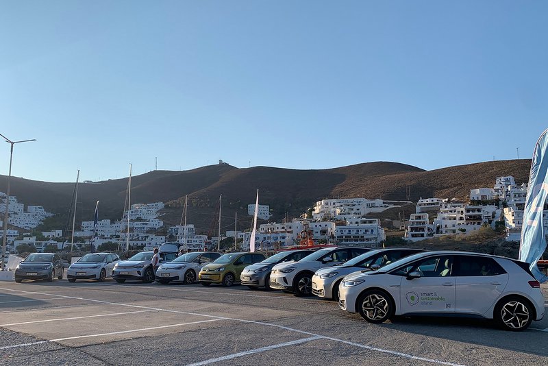 Πριν από λίγες μέρες, η Kosmocar διοργάνωσε στο νησί ένα τριήμερο test-drive ηλεκτρικών αυτοκινήτων, με ανοικτή συμμετοχή των κατοίκων, προκειμένου να εξοικειωθούν με τη νέα μορφή κινητικότητας. Διαθέσιμος προς οδήγηση ήταν ένας στόλος αποτελούμενος από μοντέλα της Volkswagen, συγκεκριμένα τα e-up!, ID.3 και ID.4.