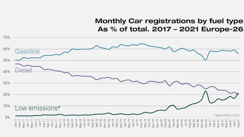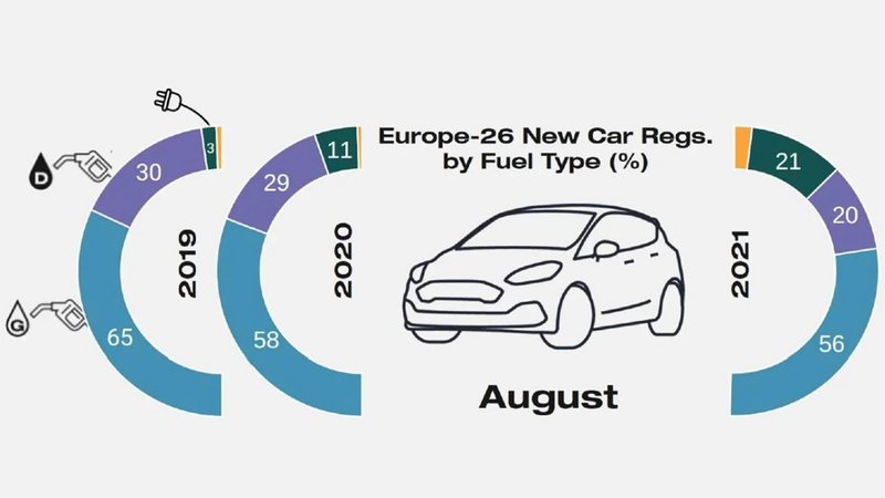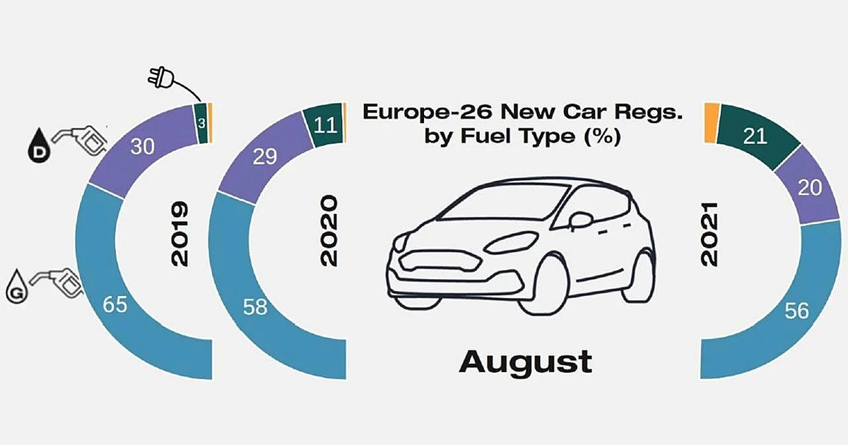Η ευρωπαϊκή αγορά αυτοκινήτων είναι σαφές ότι συνεχίζει να υπολειτουργεί. Τον Αύγουστο του 2021, οι πωλήσεις αυτοκινήτων στην Ευρώπη έφτασαν τις 713.714 μονάδες και η ποσοστιαία μείωση της τάξης του 18% αντικατοπτρίζει την συνολική ύφεση της αγοράς, αλλά και την συνεχιζόμενη κρίση από την έλλειψη ημιαγωγών.