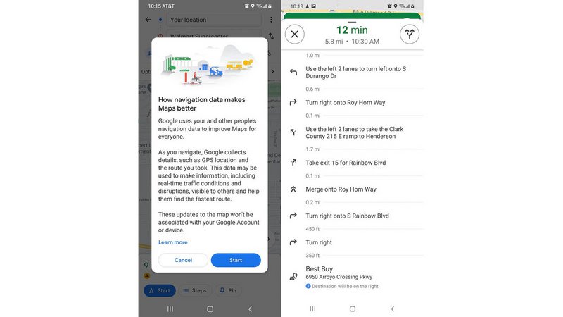 Εάν ο χρήστης δεν συμφωνεί να μοιραστεί αυτά τα δεδομένα και αντ 'αυτού, κάνει κλικ στο κουμπί "Ακύρωση", οι Χάρτες Google απενεργοποιούν πλήρως την πλοήγηση σε πραγματικό χρόνο. Αντ 'αυτού, οι χρήστες θα βλέπουν μόνο την παλιά λίστα οδηγιών. Δεν θα λαμβάνουν επίσης φωνητικές οδηγίες ή πλοήγηση.