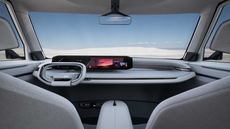 Το εσωτερικό του EV9 Conceptακολουθεί μία τελείως διαφορετική φιλοσοφία, αφού λείπουν οι αιχμηρές γωνίες. Εδώ η εικόνα είναι απόλυτα μινιμαλιστική και λιτή. Ο οδηγός έχει μπροστά του μια οθόνη 27 ιντσών που διατρέχει όλο το ταμπλό. Μια πανοραμική γυάλινη οροφή αφήνει άφθονο φυσικό φως να περάσει στο εσωτερικό.