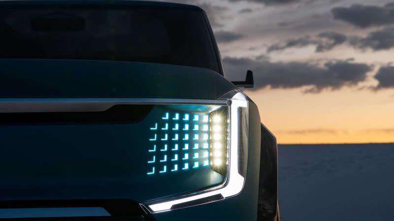 Η Kia λέει ότι η εξωτερική σχεδίαση με τις αιχμηρές άκρες εμπνέεται από τα σχήματα των κρυστάλλων και των βράχων. Ως είθισται στα ηλεκτρικά EV οχήματα, δεν χρειάζεται το άνοιγμα της παραδοσιακής μάσκα και στη θέση της υπάρχει μια ράβδος στο χρώμα του αμαξώματος, ενώ τα φώτα αποτελούνται από πολλά LED στοιχεία σε τετράγωνο σχήμα. Στις εξωτερικές άκρες τους δε, υπάρχουν κάθετα φώτα ημέρας. Στο πίσω μέρος συνεχίζεται το γωνιώδες σχήμα με τα πίσω φώτα σε σχήμα Υ να ξεχωρίζουν.