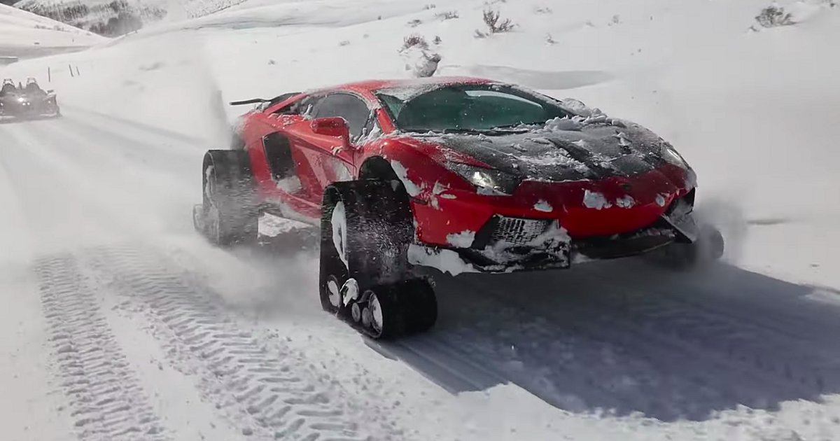 Με αυτή τη λογική οι άνθρωποι που τρέχουν το κανάλι TheStradman στο YouTube αποφάσισαν να φορέσουν –άκουσον άκουσον- ερπύστριες σε μία Lamborghini Aventador και να την βγάλουν βόλτα στα χιόνια.