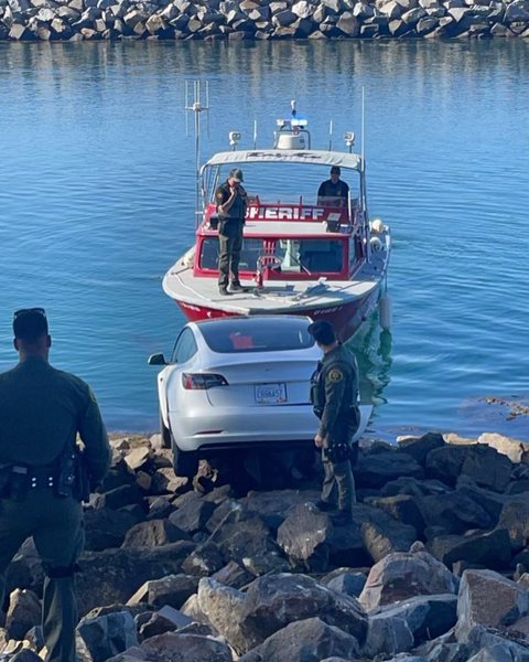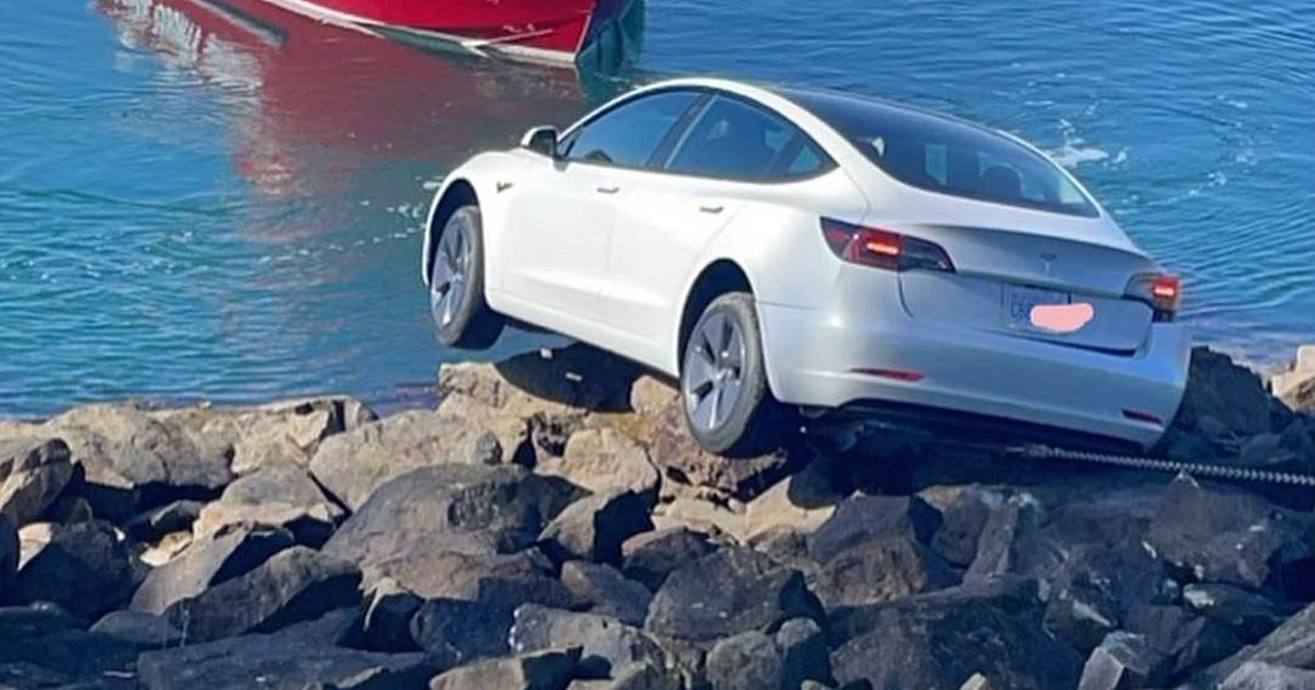 Το περιστατικό συνέβη στο Orange County της Καλιφόρνια με αποτέλεσμα το ηλεκτρικό μέσα σε λίγα δευτερόλεπτα να απογειωθεί και να βρεθεί πάνω στα βράχια, λίγα εκατοστά από το νερό στο λιμάνι του Dana Point. Ευτυχώς κανείς δεν έπαθε τίποτα και στη συνέχεια στήθηκε επιχείρηση από τις τοπικές αρχές για να απομακρύνουν το αυτοκίνητο.