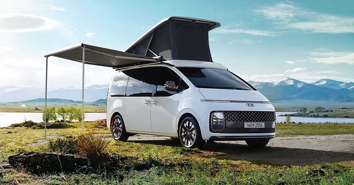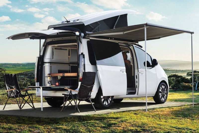 Παρουσιάστηκε στη Νότια Κορέα και διατίθεται με επιλογές 4 και 11 θέσεων. Διαθέτει μια ηλεκτρικά αναπτυσσόμενη σκηνή στην οροφή που ανοίγει και ένα στρώμα αέρα στο εσωτερικό. Χάρη στο σχήμα του η καμπίνα του είναι πολύ ευρύχωρη. Για την άνεση των επιβατών του, η Hyundai εξόπλισε το Staria με ένα ψυγείο 36 λίτρων, ένα σετ νεροχύτη και βρύσης, ένα πτυσσόμενο τραπέζι και ενσωματωμένα πλαϊνά ράφια.