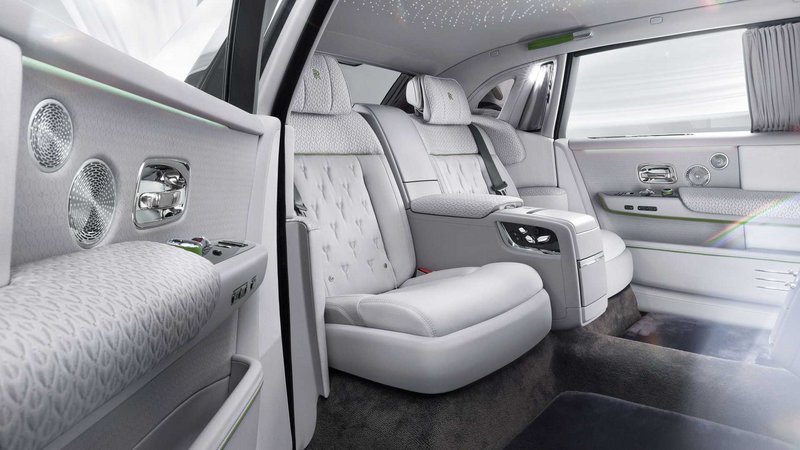 Από εκεί και πέρα στα πίσω καθίσματα, οι πελάτες με έντονες περιβαλλοντικές ευαισθησίες, έχουν τη δυνατότητα να... γυρίσουν την πλάτη στο δέρμα και να επιλέξουν το πακέτο Phantom Platino. Αυτό προσφέρει μία επένδυση που συνδυάζει ένα ύφασμα ιταλικής προέλευσης και ένα που αποτελείται από ίνες μπαμπού.