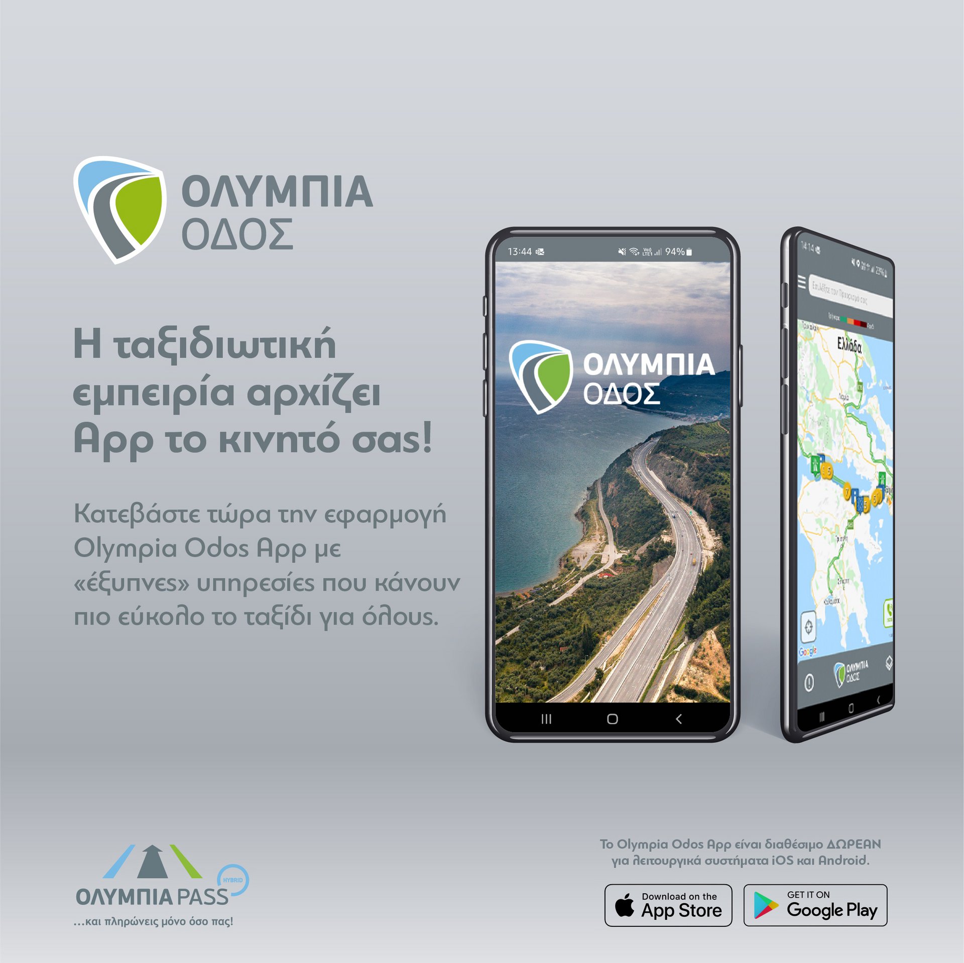 Το Olympia Odos App είναι διαθέσιμο δωρεάν για λειτουργικά συστήματα iOS και Android.