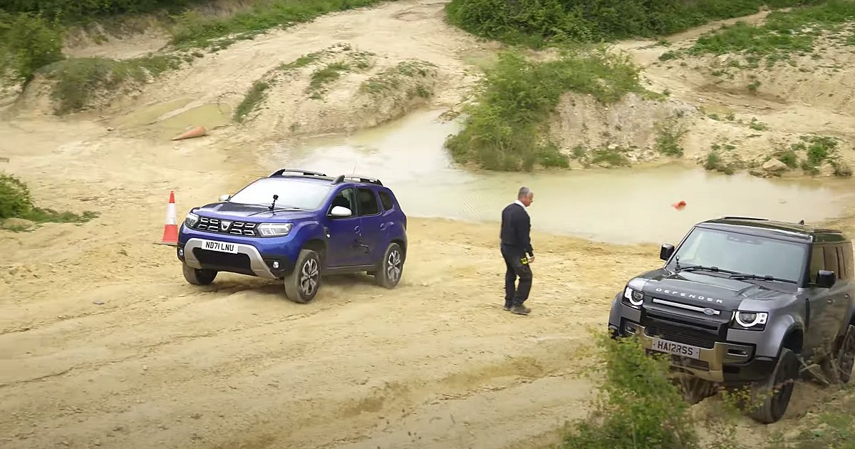 Στη συγκριμένη περίπτωση επέλεξαν ένα τετρακίνητο Dacia Duster 1.5 Blue dCi 116 PS (115, κατ’ ονομασία) και ένα Land Rover Defender 110 με τον τρίλιτρο εξακύλινδρο πετρελαιοκινητήρα των 300 PS και σύγκριναν την ικανότητα κίνησής τους εκτός δρόμου.