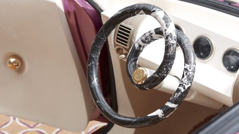 Το εσωτερικό είναι εξαιρετικά μίνιμαλ. Ο Gonalons κράτησε μόνο μια χούφτα συγκεκριμένα στοιχεία. Οι χειρολαβές των θυρών, οι μανιβέλες των παραθύρων και ο μοχλός αλλαγής ταχυτήτων έχουν σφαιρική μορφή ενώ το μείγμα υλικών αποπνέει μια πινελιά παριζιάνικης αίσθησης: ελαφρύς επιχρυσωμένος ορείχαλκος σε συνδυασμό με ανοξείδωτο μέταλλο και ανθεκτικά υλικά. Το τιμόνι είναι κατασκευασμένο από λεπτό μάρμαρο Grand Antique d'Aubert (προέρχεται από τα βόρεια Πυρηναία). Παρά το ασυνήθιστο σχήμα του, χαρακτηρίζεται από τη μεγάλη του φιλικότητα προς το χρήστη και έτσι ακολουθεί τις προσπάθειες του Gonalons να μην βλάψει τη λειτουργικότητα με την καλλιτεχνική ελευθερία. Το γεγονός ότι ακόμη και το κλειδί του οχήματος δέχτηκε ειδική επεξεργασία μαρτυρεί την αγάπη του σχεδιαστή για τη λεπτομέρεια.