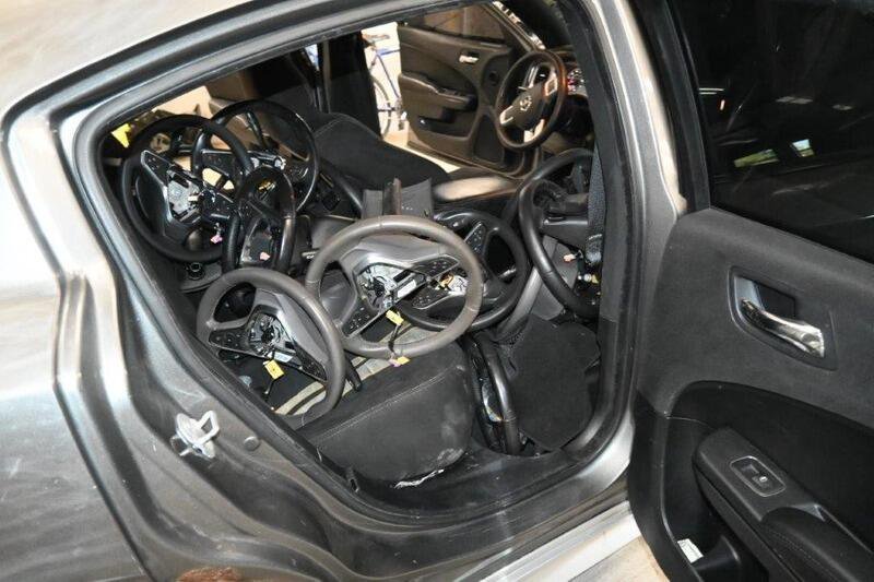 Μετά από καταδίωξη οι αστυνομικοί κατάφεραν να τους ακινητοποιήσουν και μετά από έρευνα βρέθηκαν στην κατοχή τους 33 τιμόνια, όπου στην πλειοψηφία τους προέρχονταν από το μοντέλο Chevrolet Malibu.