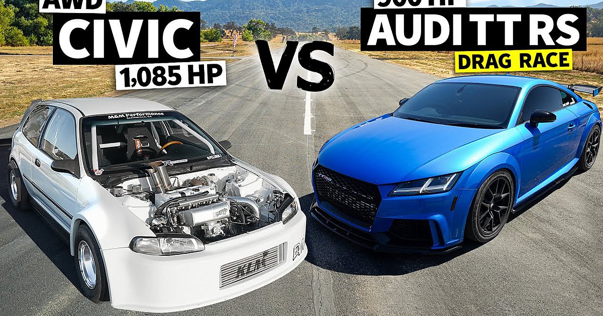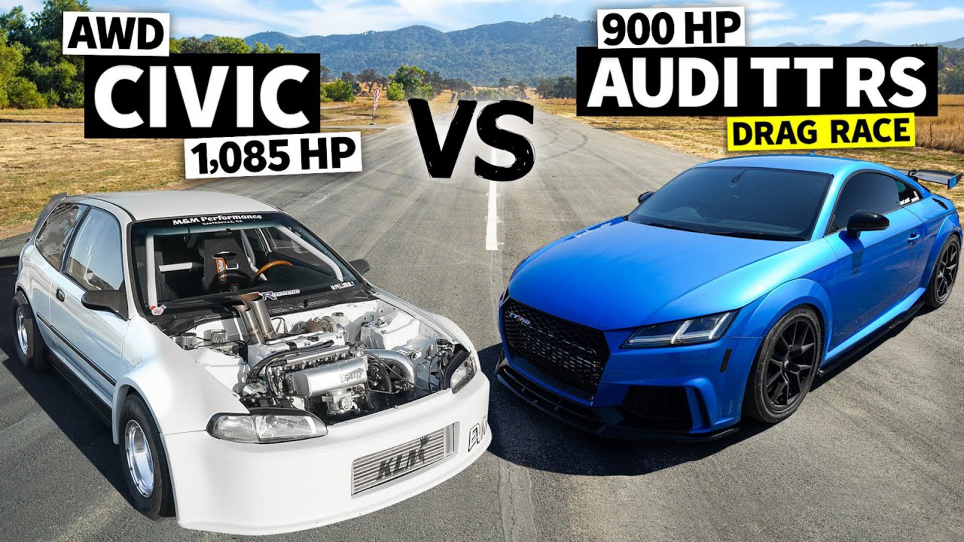Απέναντί του ένα Audi TT RS του 2018, που σε στοκ μορφή αποδίδει 405 PS από τον εν σειρά 5κύλινδρο κινητήρα των 2,5 λίτρων που φέρει, αλλά με τις μετατροπές που του έχουν γίνει αναφέρεται στο βίντεο πως πλέον φτάνει τα 912 PS. Φυσικά, είναι κι αυτό τετρακίνητο, φέρνοντας τα πράγματα στα ίσια σε αυτόν τον τομέα.
