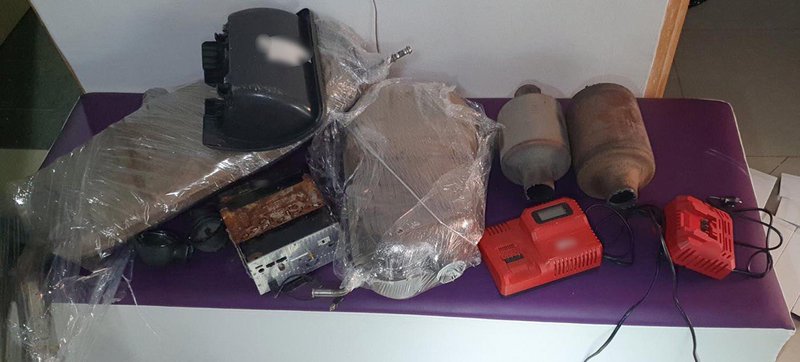 Μετά από 11 έρευνες σε σπίτια, η Αστυνομία κατάσχεσε 5.075 ευρώ, 2 αυτοκίνητα, 43 καταλύτες αυτοκίνητων και 1 τελικό μέρος εξάτμισης, 1 όπλο κρότου και 1 πτυσσόμενο γκλοπ, καθώς και πλήθος εργαλείων κοπής και τηλεφωνικώνσυσκευών.