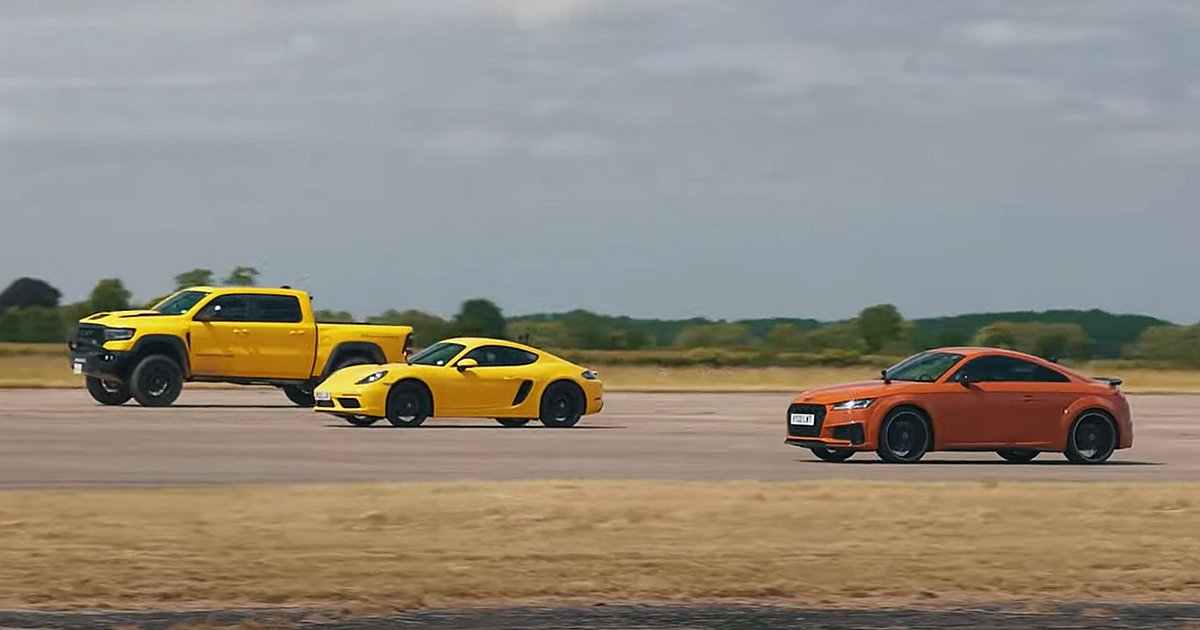 Κι αυτό, γιατί, μαζί με το Audi TTS και την Porsche Cayman, βρίσκεται και το τεράστιο (και πανίσχυρο) Hennessey TRX Mammoth.