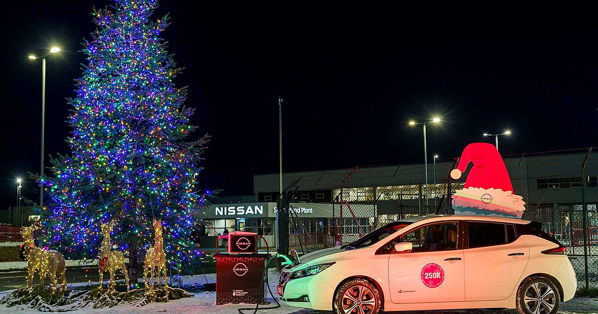 Ένα Nissan LEAF παρέχει ρεύμα στο χριστουγεννιάτικο φωτισμό του εργοστασίου της εταιρείας στο Sunderland, σηματοδοτώντας με αυτόν τον τρόπο το ορόσημο της παραγωγής 250.000 οχημάτων του δημοφιλούς μοντέλου, στις παραγωγικές εγκαταστάσεις του Ηνωμένου Βασιλείου.