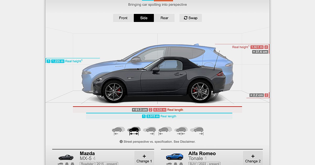 Εκτός αυτού, μπορεί κανείς να διαπιστώσει το πόσο έχουν αλλάξει τα αυτοκίνητα σε βάθος χρόνου, συγκρίνοντας παλαιότερες με νεότερες γενιές του ίδιου μοντέλου, ή ακόμη και μοντέλα που έχουν πάψει να βρίσκονται στην κυκλοφορία, με άλλα που μόλις αποκαλύφθηκαν. Βέβαια, η τελευταία ανανέωση μοντέλων έγινε το 2022, οπότε κάποιες από τις νεότερες κυκλοφορίες δεν είναι διαθέσιμες στην ιστοσελίδα.