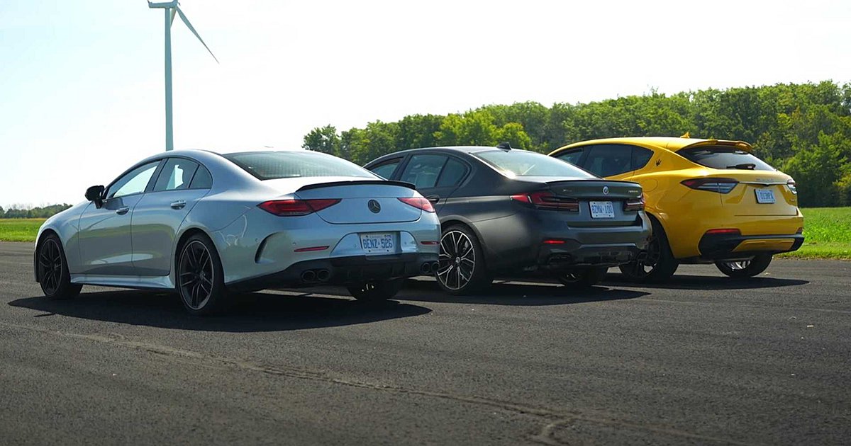 Απέναντί της, δύο performance sedans. Το ένα είναι η Mercedes-AMG CLS 53, που από τον ήπια υβριδικό εν σειρά 6κύλινδρο, 3λιτρο κινητήρα της αποδίδει 435 PS και φτάνει τα 521 Nm ροπής. Κι αυτή είναι τετρακίνητη, με 9τάχυτο, αυτόματο κιβώτιο ταχυτήτων.