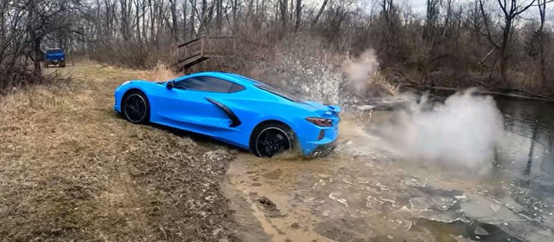Παρόλα αυτά, η δίψα του για περιπέτεια ήταν ακόμα μεγαλύτερη. Στο πρώτο από τα δύο video που αναρτήθηκαν στο κανάλι Street Speed 717 του YouTube, η Corvette δοκιμάζει να μπει, κατά το ήμισυ, μέσα σε ένα βάλτο. Οι δεξιές ρόδες ήταν αυτές που βυθίστηκαν στο νερό, με αποτέλεσμα να μείνει στη λάσπη και να χρειαστεί η ρυμούλκηση από ένα pick-up για να μπορέσει να ξεκολλήσει.