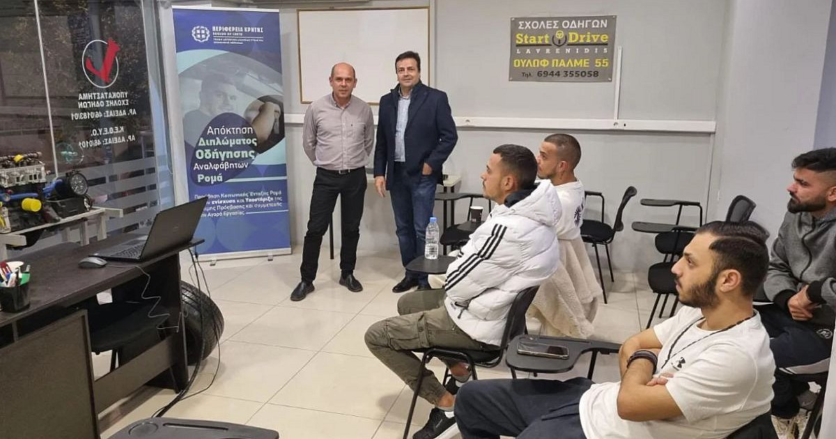 Ξεκίνησε και υλοποιείται από τη Γενική Διεύθυνση Δημόσιας Υγείας και Κοινωνικής Μέριμνας της Περιφέρειας Κρήτης η δράση που αφορά την δωρεάν παρακολούθηση τόσο των θεωρητικών μαθημάτων του Κώδικα Οδικής Κυκλοφορίας όσο και των πρακτικών μαθημάτων οδήγησης με απώτερο στόχο την απόκτηση διπλώματος οδήγησης από νεαρά αναλφάβητα άτομα Ρομά που ασκούν το επάγγελμα του μικροπωλητή και διαμένουν στην Περιφέρεια Κρήτης, προωθώντας ίσες ευκαιρίες και άρση του κοινωνικού αποκλεισμού των Ρομά στην Π.Ε. Ηρακλείου.