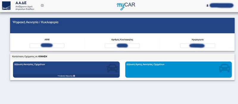 - Μετάβαση στην πλατφόρμα «myCAR» της ΑΑΔΕ
