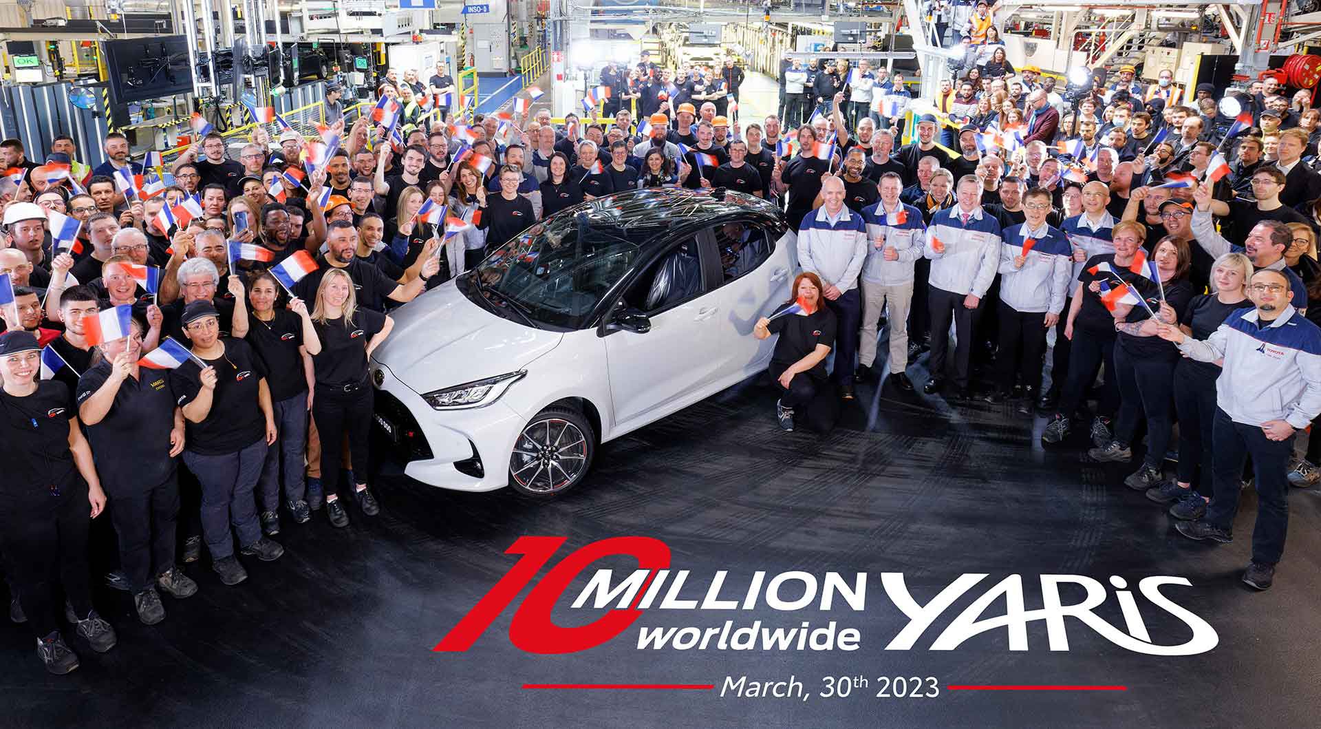 Ένα Yaris GR SPORT, που κατασκευάστηκε στο εργοστάσιο της Toyota στη Γαλλία, ήταν αυτό που είχε το προνόμιο να αποτελεί το Yaris Νο 10.000.000. Αν και το supermini έχει διατεθεί σε όλο τον κόσμο με διάφορα ονόματα, οι Ιάπωνες προσμετρούν στη λίστα «μόνο» τις ονομασίες Yaris, Vitz, Yaris Cross και GR Yaris.
