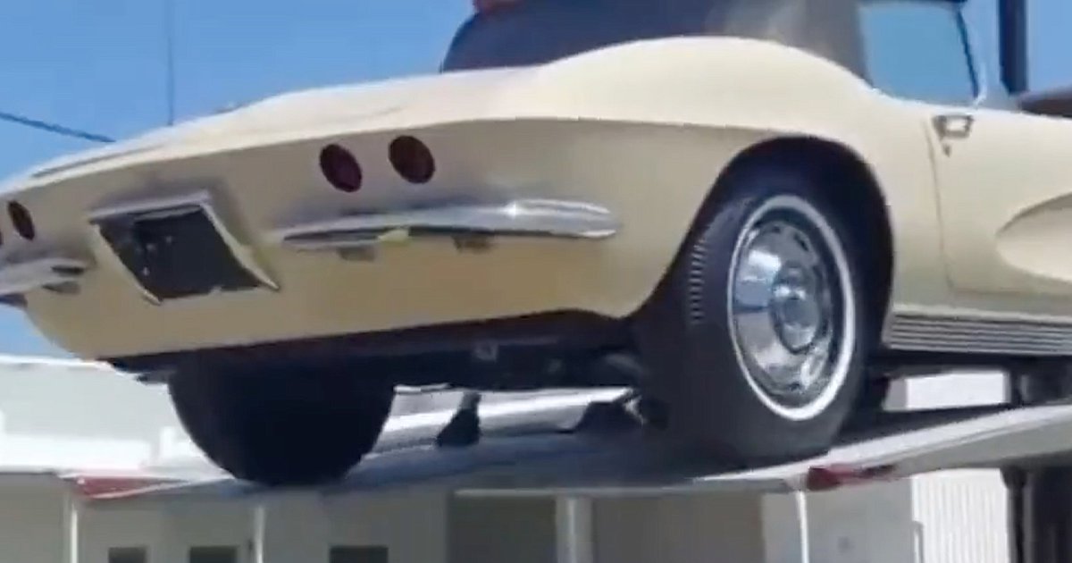 Μία 1962 Chevrolet Corvette έπεσε από τη ράμπα του φορτηγού που τη μετέφερε στον νέο της ιδιοκτήτη, εξαιτίας... κακού υπολογισμού.
