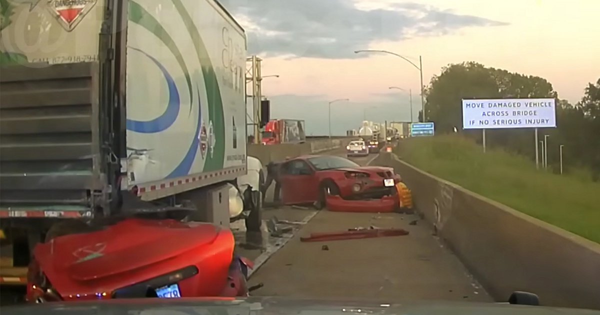 «Το όχημα ταξίδευε με ταχύτητα που ξεπερνούσε τα 160 km/h κοντά στη δεξιά μπαριέρα του δρόμου,» αναφέρει η περιγραφή του video που δημοσίευσε το κανάλι Police Pursuits στο YouTube. Η Pontiac βρέθηκε κομμένη σε δύο μεγάλα κομμάτια, με το μπρος και το πίσω μέρος της να έχουν αποκολληθεί.