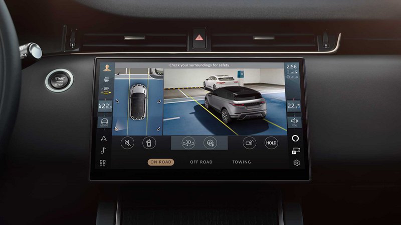 Στο εσωτερικό έρχονται οι περισσότερες αλλαγές, με τη μινιμαλιστική σχεδίαση της κεντρικής κονσόλας, στην οποία ξεχωρίζει η νέα κυρτή γυάλινη οθόνη αφής 11,4 ιντσών με το προηγμένο σύστημα infotainment Pivi Pro, που υιοθετήθηκε και στα αναβαθμισμένα Range Rover Velar και Discovery Sport.